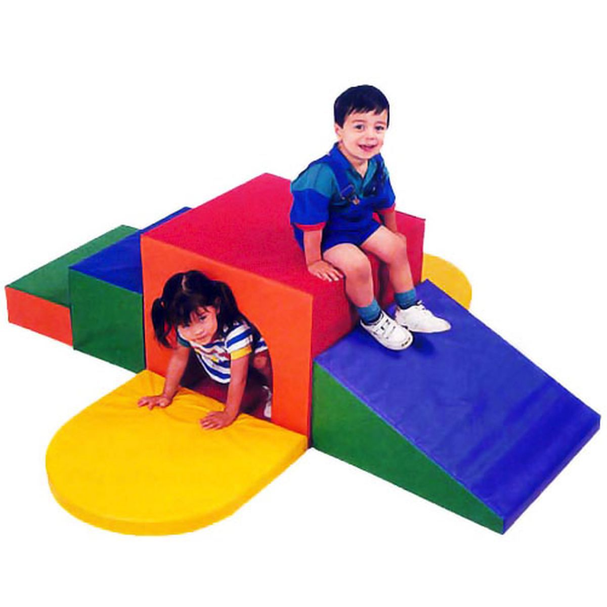 O Circuito Espumado Soft Túnel é composto por 5 peças, sendo 1 escada de 2 degraus, 1 rampa, 1 túnel e duas saídas com 2 colchonetes de semi círculo.